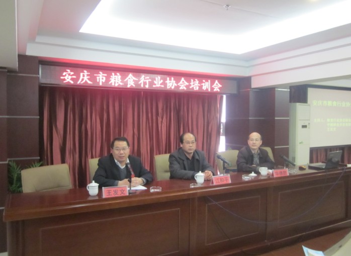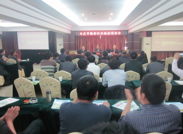 2014年3月18日我公司在碧海云天城市酒店承辦《安慶市糧食行業(yè)協(xié)會(huì)培訓(xùn)會(huì)》。糧食行業(yè)協(xié)會(huì)副會(huì)長(zhǎng)、安徽宇順?lè)N業(yè)開(kāi)發(fā)有限公司董事長(zhǎng)王發(fā)文主持。參會(huì)人員有安慶市及各縣糧食局負(fù)責(zé)人、糧食行業(yè)協(xié)會(huì)會(huì)員單位以及各縣種植大戶(hù)70余人。大會(huì)邀請(qǐng)安慶市糧食局調(diào)控科科長(zhǎng)華德勝博士做“2014年糧食市場(chǎng)行情分析報(bào)告”;邀請(qǐng)安慶市宜秀區(qū)農(nóng)技推廣中心專(zhuān)家江和平做“大戶(hù)規(guī)模經(jīng)營(yíng)中注意的幾個(gè)問(wèn)題”的報(bào)告。