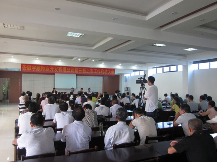 9月3日,安徽宇順種業(yè)開發(fā)有限公司新三板上市工作啟動(dòng)大會(huì)在該公司二樓大會(huì)議室隆重召開。來自該公司各分公司、研究所、各駐點(diǎn)辦事處、直營超市近百名員工歡聚一堂、滿懷信心,共同見證公司發(fā)展史上這一重要的歷史時(shí)刻。宜秀區(qū)農(nóng)業(yè)局局長王磊、金融辦主任張林參加了會(huì)議并發(fā)表了熱情洋溢的講話。