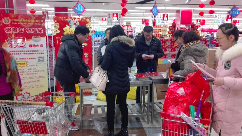 為配合農(nóng)展會(huì)的有序進(jìn)行,我司于19、20日兩天在安慶各大商場(chǎng)同時(shí)啟動(dòng)了“迎新年 領(lǐng)福米”的活動(dòng),市民只需憑商場(chǎng)購物發(fā)票就可在專柜上領(lǐng)取嬉子紅米一份,和農(nóng)展會(huì)一起讓更多的安慶市民都能在春節(jié)期間吃上真正的紅米飯,感受原生態(tài)的健康。